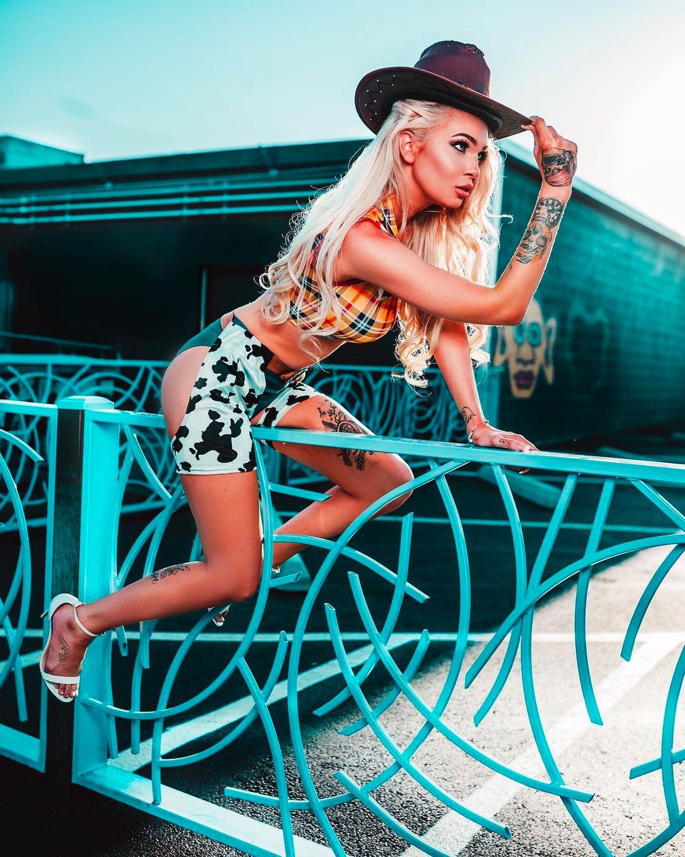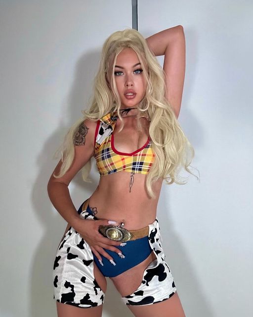 Get dressed in this sassy look and get ready to rope up some good times. This cute costume features a sassy collared yellow plaid crop top with contrasting cow print details that exposes your taut midriff. The deep v neckline shows off your cleavage for a little bit of sexy appeal. Pair with the denim colored short shorts and strap on the short cow print chaps. Finish off the look with the included vintage cowboy style belt that’s bursting with authentic western details. You’re certain to be the favorite of the bunch in this costume that stands out from the crowd.