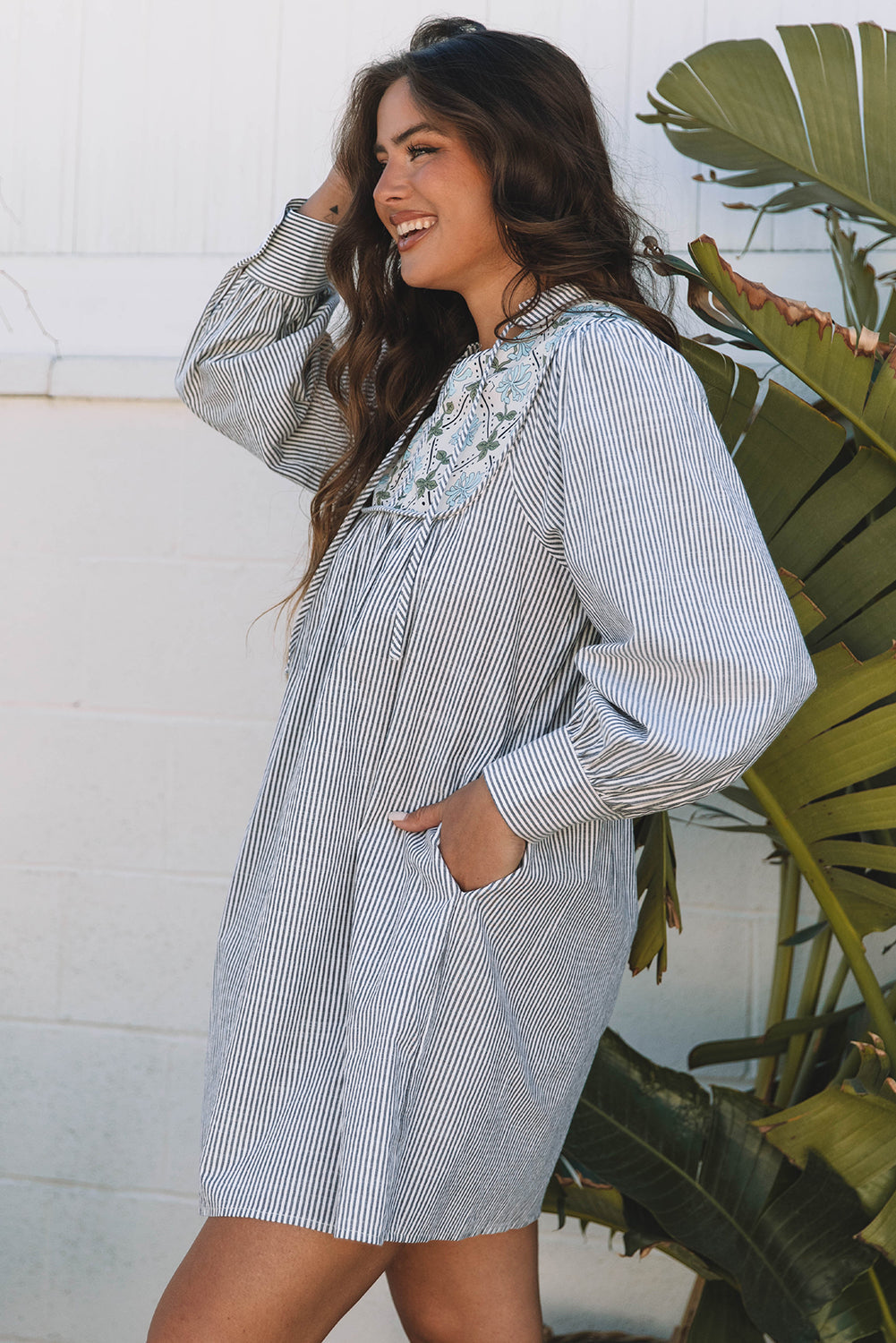 Aila Stripe Floral Patchwork Tied Mini Dress