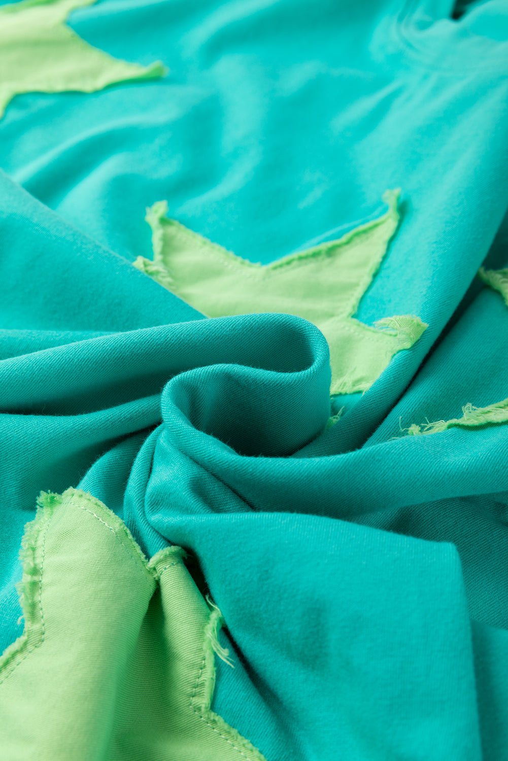 This cool oversized tee rocks a frayed denim star patch that adds a fun, edgy vibe. With its classic crew neck and easygoing half sleeves, it’s comfy enough for all-day adventures. Perfect for mixing casual comfort with a splash of street-style charm!