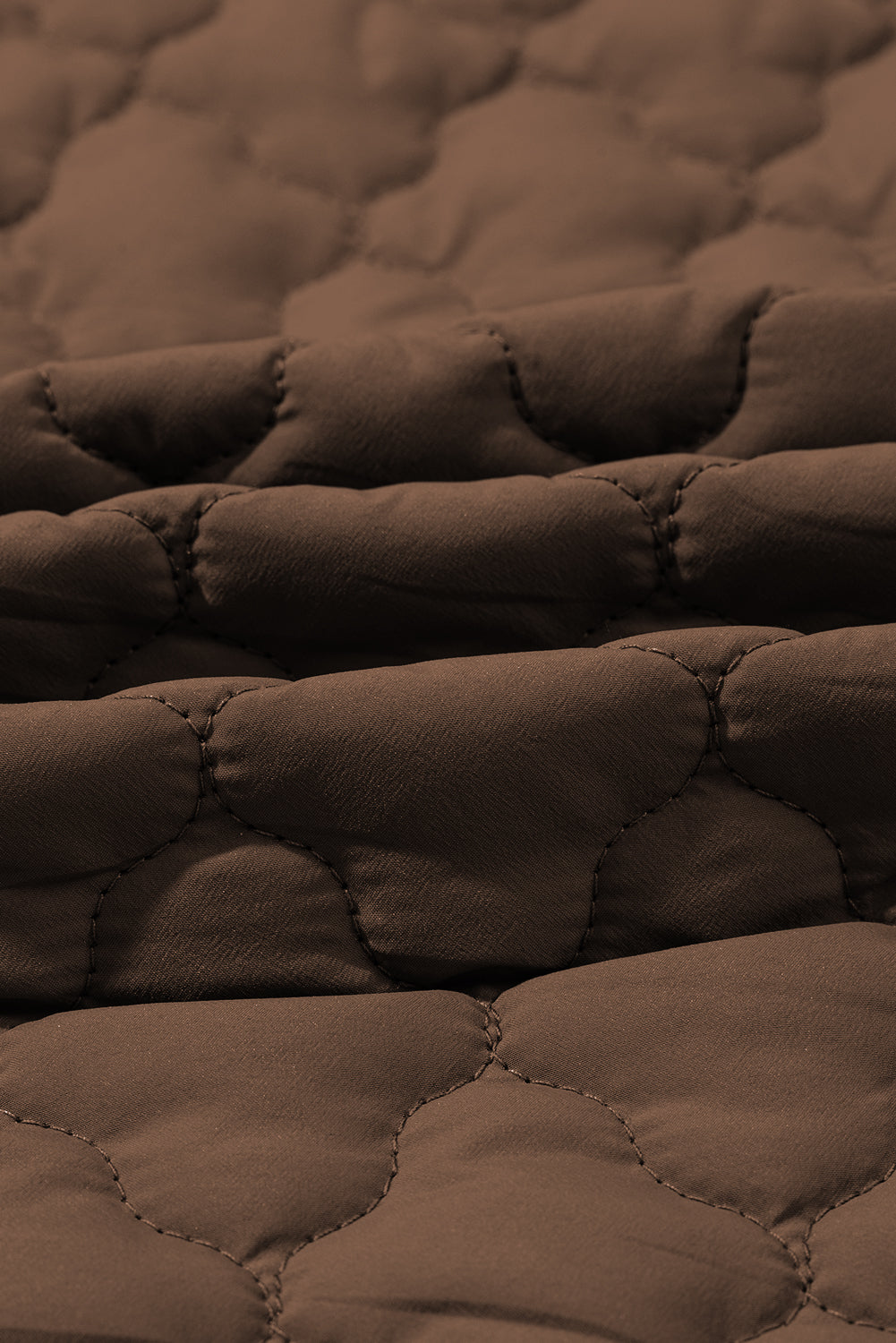 Meet Evelyn Zip Up Winter Vest—effortless, flattering, and easy to style for everyday life. Layer up for the chilly season with this quilted vest. The solid color vest has a cute flower-pattern quilted design. Stand neck and a flattering silhouette that ends in a straight hemline. It has 2 large patch pockets, snap buttons, and a zip closure.