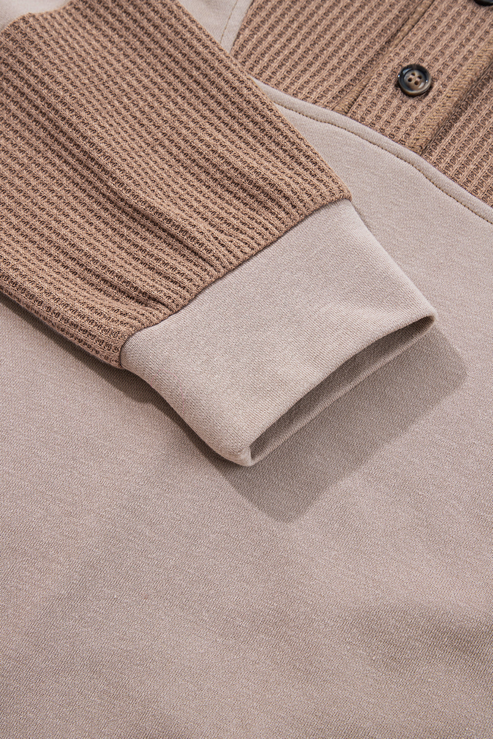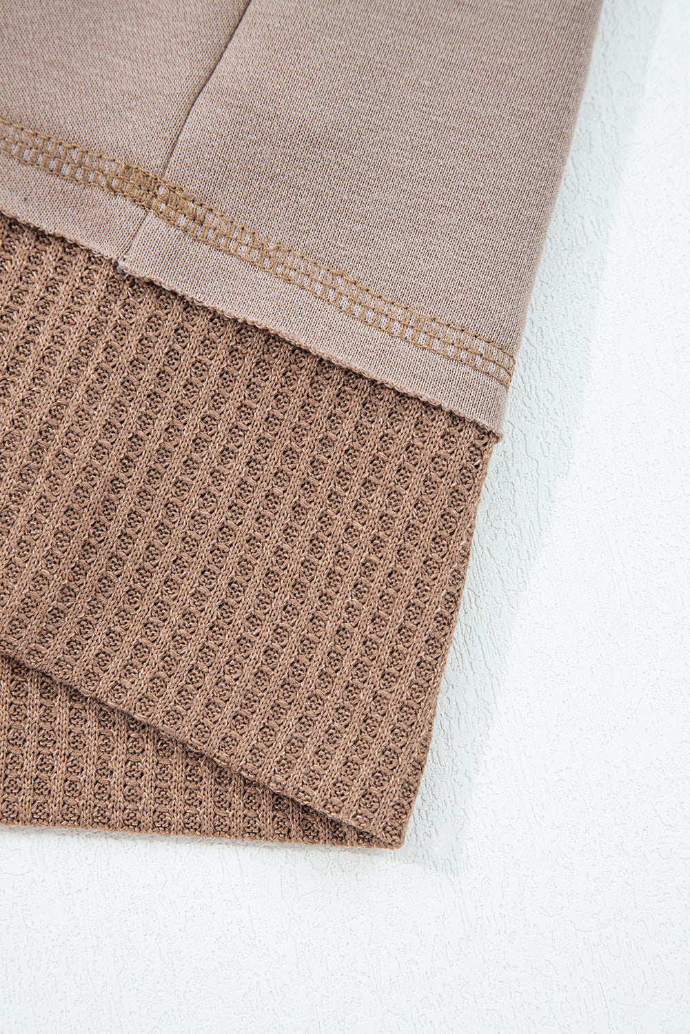 Meet Goat Waffle Contrast Patchwork Plus Size Pocketed Hoodie—effortless, flattering, and easy to style for everyday life. Take your style to the next level with this hoodie. This unique top has a waffle knit fabric patchwork. Retro pullover with mineral wash and raw seam details. Stand out from the crowd with this must-have top for women. plus size sweatshirts cheaply online.